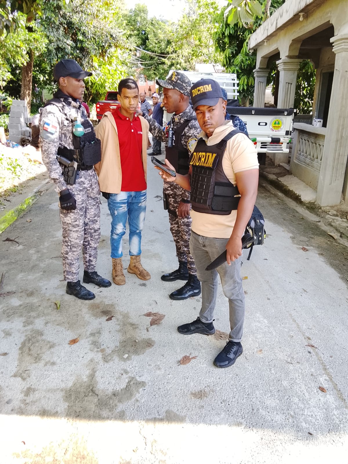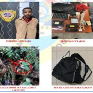 Posteriormente, una comisión policial se trasladó a las proximidades del Puente La Malena, en el Distrito Municipal La Cuaba, con el objetivo de localizar el arma de fuego utilizada por el detenido para amedrentar y someter a violencia a las víctimas.