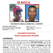 La Policía Nacional informó el apresamiento en Villa Altagracia y sometimiento a la justicia del nombrado Dalgeni de Jesús, alias “Doble Filo” o “Tabarón”, quien era perseguido por las autoridades tras tener en su contra la orden de arresto, ya que es señalado como el segundo participante en el secuestro de una mujer y hombre en Pedro Brand.