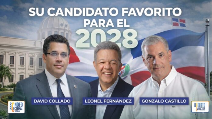 Monclus informó que en esta entrega del “Sondeo Electoral 2028” se enfrentarán tres de las principales figuras del escenario político nacional: Leonel Fernández, David Collado y Gonzalo Castillo, en una medición que busca captar el pulso real de la ciudadanía.